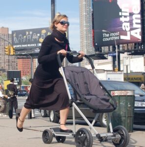 8- Carrinho para bebê que também é um patinete, para que a mãe também se divirta no passeio